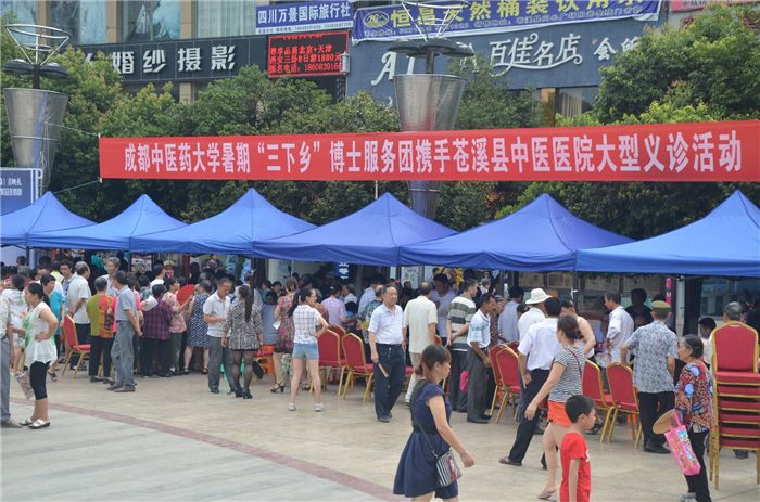 8月4日至6日,学校暑期“三下乡”社会实践博士服务团来到广元市苍溪县,开展中医药资源调查、医养结合调研、大型义诊、教学查房、专题讲座、校地合作座谈及医疗药品捐赠等活动。校党委副书记、副校长沈涛担任服务团团长,学生处、校团委、临床医学院、药学院、针灸推拿学院、第二临床医学院、养生康复学院、基础医学院的领导、专家和工作人员共38人参加活动。