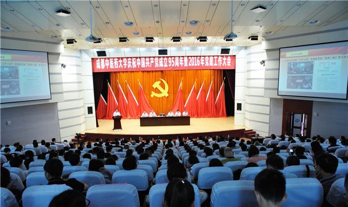 7月1日,学校庆祝中国共产党成立95周年暨2016年党建工作大会在温江校区百会堂举行。会议集中观看在人民大会堂举行的庆祝中国共产党成立95周年大会实况,表彰先进基层党组织、优秀党务工作者和优秀共产党员,党委书记马跃荣作题为《切实加强和改进党的建设,为实现“十三五”奋斗目标提供坚强保证》的重要讲话。党委副书记、校长梁繁荣主持大会。在家校领导、处级领导干部、受表彰的先进基层党组织负责人、优秀党务工作者和优秀共产党员,师生党员代表,校内民主党派基层组织和侨台联负责人等380余人参加大会。