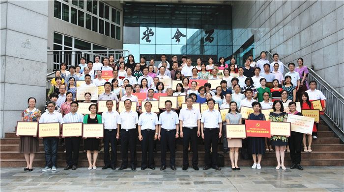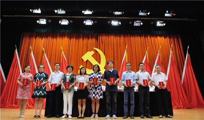 党委常委、副校长余曙光宣读《中共四川省教育工作委员会关于表扬全省高校先进基层党组织、优秀共产党员、优秀党务工作者的决定》等上级表彰文件,副校长彭成宣读学校党委《关于表彰先进基层党组织、优秀党员和优秀党务工作者的决定》,党委常委、纪委书记延建明宣读《关于在“两学一做”学习教育中命名共产党员示范单位、示范团队、示范岗的通报》,党委常委、副厅级调研员徐廉宣读《关于2016-2017年度党建特色项目立项的通知》《关于表彰庆祝建党95周年暨建校60周年党建研究征文的决定》。与会校领导为受表彰的先进集体和个人颁奖。