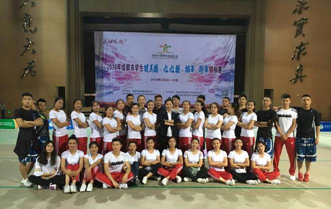 5月28日—29日由成都市健美健美操协会主办,电子科技大学承办的“运动成都”2016年成都市学生健美擦、啦啦操、排舞、街舞锦标赛在电子科技大学举行,Beat365官网体育学院体育学院2013级健美操专选班35名同学在专业老师赵莉的带领下参加比赛,获得“有氧踏板”和“有氧搏击”两个项目的一等奖。