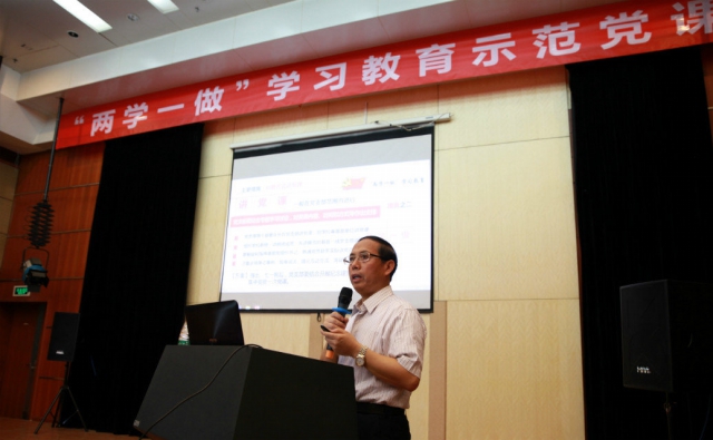 马克思主义学院院长刘东梅讲授题为《中国共产党章程的发展历史和启示》的示范党课,详细介绍党章的发展历史,回顾中国共产党95年波澜壮阔的奋斗历程。她表示,一个永葆生机活力的政党一定是善于自主创新的政党,对于我国来说就是要与时俱进,走一条马克思主义中国化的特色道路。