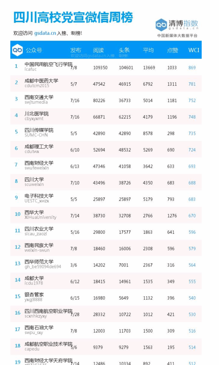 学校官方微信在四川高校党宣微信周榜中位居第二 发布时间:2016-04-25 15:48:00 浏览次数: 次 【字体:小 大】 (编辑/任翔) 【打印正文】 上一条:2016年学校春季运动会开幕 下一条:学校官方微信在四川高校党宣微信周榜中位居第二