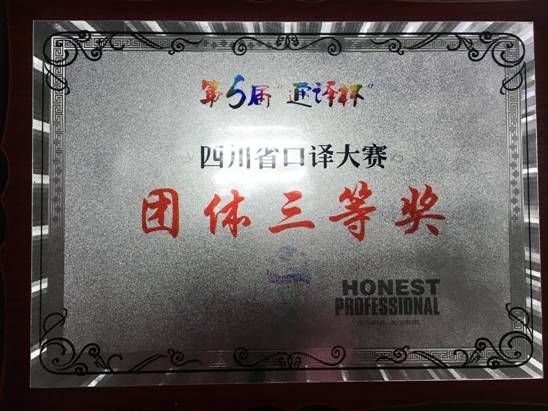 3月12日,第五届“通译杯”四川省口译大赛决赛(同传体验)及总评颁奖礼暨成都国际化都市营建与翻译外事人才论坛在电子科大沙河校区举行,来自电子科技大学、西南财经大学、西南交通大学、Beat365中文官方网站等15所川内高校的21名选手参赛,Beat365官网获团体总评三等奖,外语学院2013级英语专业学生邱菲获专业组个人总评二等奖。
