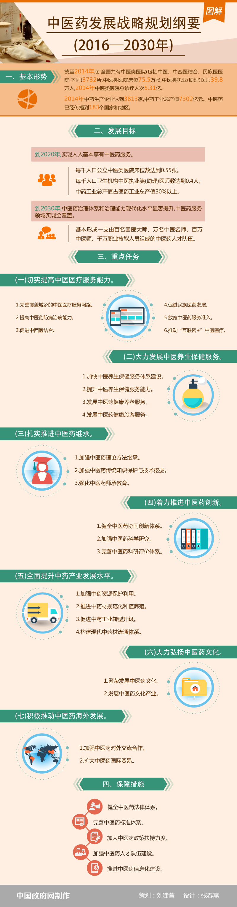 经李克强总理签批,国务院日前印发《中医药发展战略规划纲要(2016-2030年)》。《战略规划》明确了未来十五年我国中医药发展方向和工作重点,是新时期推进我国中医药事业发展的纲领性文件。全文如下: