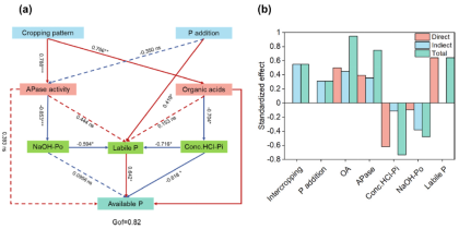论文“Stage-specific phosphorus mobilization enhances phosphorus uptake in relay-intercropped soybean”在玉米-大豆套作系统中,揭示大豆在生殖生长期采用复杂动态磷动员策略。R1期,大豆通过增加根系有机酸分泌量显著增强了磷动员能力,增加荚果初期土壤可溶性磷含量。当植株进入R3期,磷酸酶代替有机酸发挥主要作用,该时期酸性磷酸酶含量达到峰值,通过高效水解有机磷维持高水平的磷供给。该机制保障了关键结荚期磷供应,凸显了磷动员与植物发育需求的高效同步。有机酸和酸性磷酸酶接力动员土壤中难溶态磷,战略性协调磷动员与大豆生长需求。