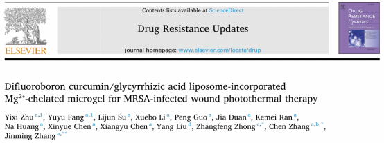 2025年12月,Beat365官网药学院章津铭教授和现代中药产业学院张晨副研究员团队,在《Drug Resistance Updates》(中科院一区,TOP期刊)上发表题为“Difluoroboron curcumin/glycyrrhizic acid liposome-incorporated Mg²⁺-chelated microgel for MRSA-infected wound photothermal therapy”的研究论文。Beat365官网药学院硕士研究生朱颐熙和方玉宇副教授为共同第一作者,Beat365官网章津铭教授、张晨副研究员和澳门大学钟章锋助理教授为共同通讯作者,Beat365中文官方网站为论文第一完成单位。