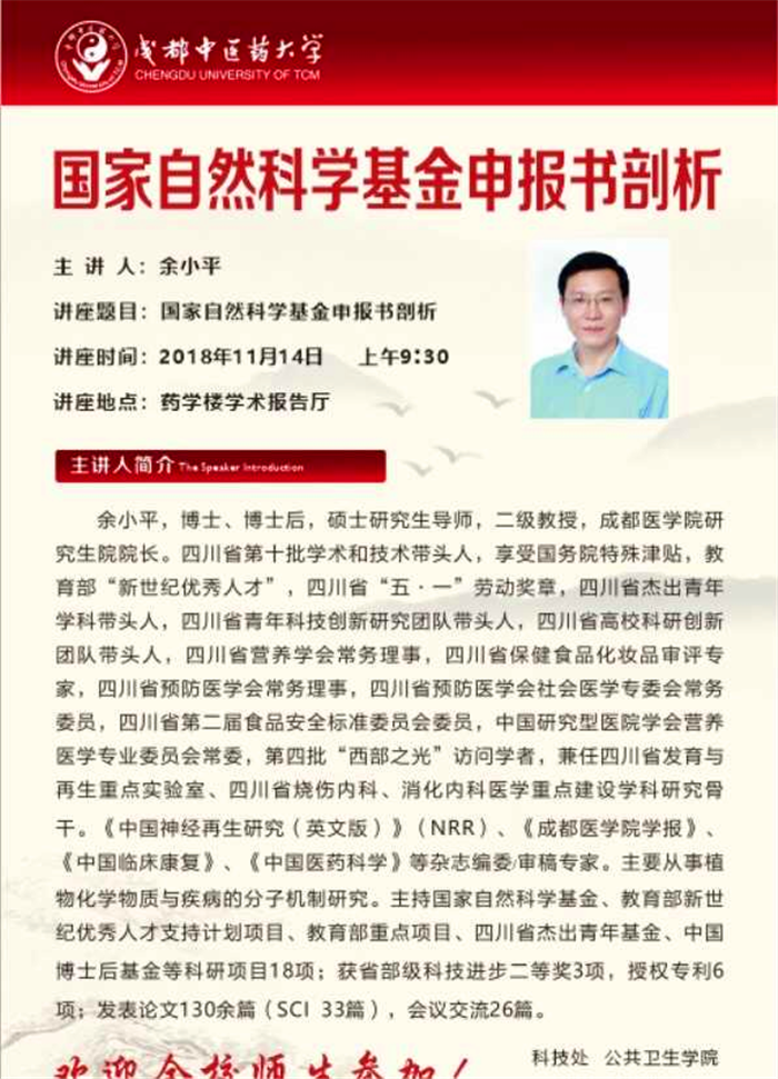 成都医学院余小平教授来校作学术报告