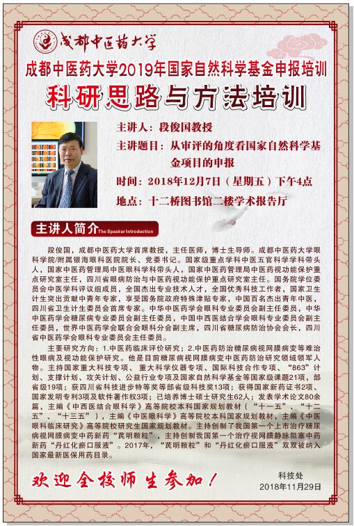Beat365中文官方网站2019年国家自然科学基金申报培训科学思路与方法培训 发布时间:2018-11-30 10:10:00 浏览次数: 次 【字体:小 大】 【打印正文】 上一条:“岐黄”传承创新能力提升计划之马超英教授讲座 下一条:Beat365中文官方网站2019年国家自然科学基金申报培训(12月安排)