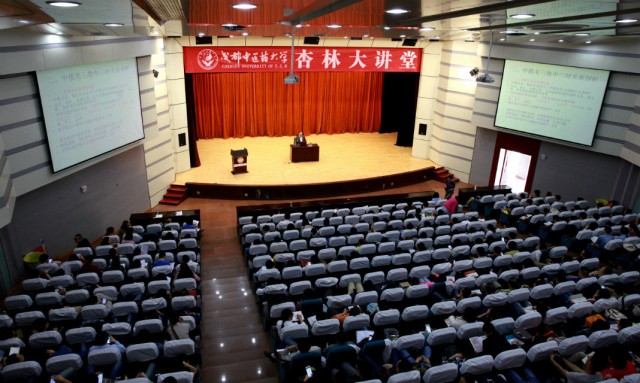 5月26日下午,由党委宣传部和马克思主义学院共同组织的2016年杏林大讲堂第二期学术讲座在温江校区百会堂举行,北京师范大学李兴教授应邀为全校师生作题为《中美俄三角关系:战略分析与策略应对》的国际形势报告。报告会由宣传部部长赖玉萍主持。