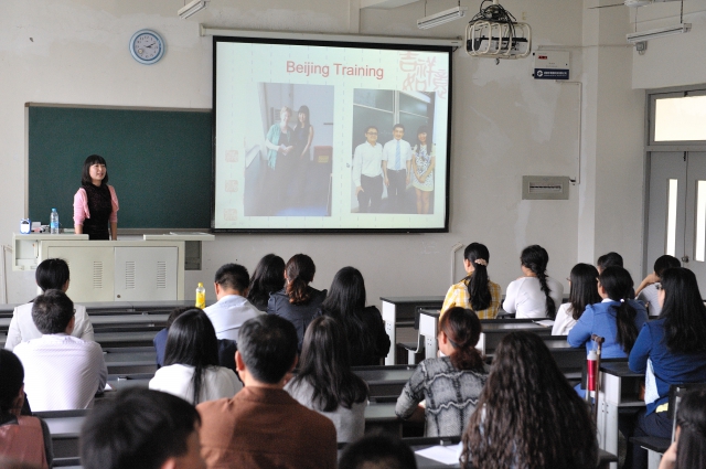 外语学院举办全校教师双语教学讲座 发布时间:2015-10-10 09:55:00 浏览次数: 次 【字体:小 大】 9月28日下午, 学校人事处、外语学院共同组织开展全校中青年教师双语教学培训活动。外语学院医学英语教研室赖寒老师以《以学生为中心的双语教学》为主题,结合自身在北京参加的来华留学生师资培训和美国印第安纳大学教授汉语的经验,就如何进行英汉双语教学、教学模式从“以教师为中心”向“以学生为中心”转变等话题,与老师们进行了分享与讨论。此次讲座为学校的双语教学系列培训拉开了序幕。 (图、文/外语学院 林彦君 编辑/罗晓文) 【打印正文】 上一条:南丁格尔奖获得者姜小鹰教授到校作专题讲座 下一条:关于南京中医药大学朱冰梅教授来校作学术报告的通知