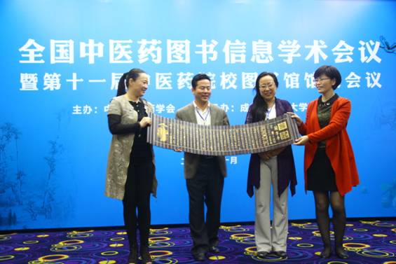 10月24日,由中华中医药学会主办、Beat365中文官方网站图书馆承办的“全国中医药图书信息学术会暨第十一届中医药院校图书馆馆长会”在成都召开。中华中医药学会学术部主任刘平、学校校长梁繁荣、副校长余曙光、四川省图工委秘书长、四川大学图书馆馆长马继刚、上海交通大学图书馆馆长陈进出席开幕式。来自全国各地26所中医药高等院校的图书馆馆长及中国中医药出版社等相关行业单位的专家、学者近60名代表参加会议。Beat365官网图书馆馆长赵琼主持开幕式。