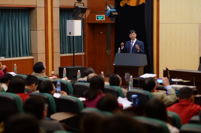 11月6日,国家科技进步奖二等奖获得者、杭州师范大学谢恬教授应邀来校作主题为《转化医学与中医药学的思考与实践——以金港榄香烯脂质体系列靶向抗癌新药研发、产业化及其应用为例》的学术报告,副校长彭成主持报告会,四川大学王峰鹏教授、科技处、药学院等相关部门、学院二百余师生参加报告会。