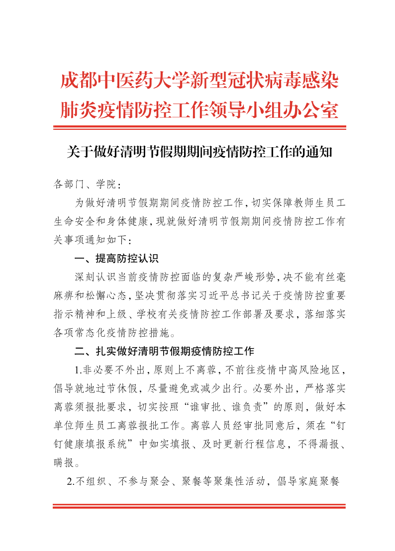 关于做好清明节假期期间疫情防控工作的通知 发布时间:2022-04-01 15:58:18 浏览次数: 次 【字体:小 大】 【打印正文】 上一条:中共Beat365中文官方网站纪律检查委员会关于严肃2022年中层领导干部集中调整工作纪律的通知 下一条:关于启动学校中层正职领导岗位干部选任工作的通知