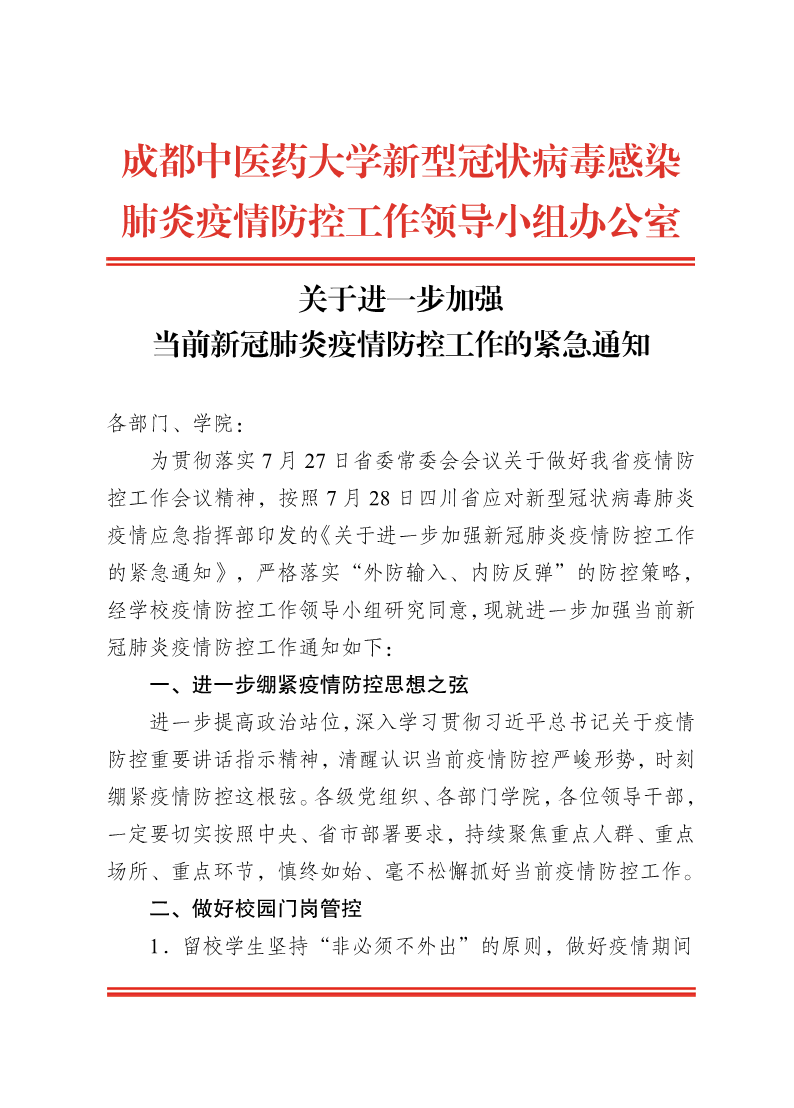 关于进一步加强当前新冠肺炎疫情防控工作的紧急通知 发布时间:2021-07-28 19:13:58 浏览次数: 次 【字体:小 大】 【打印正文】 上一条:Beat365中文官方网站2021年秋季学期开学新冠肺炎疫情防控工作方案 下一条:中共Beat365中文官方网站委员会关于余井权职务任免的通知