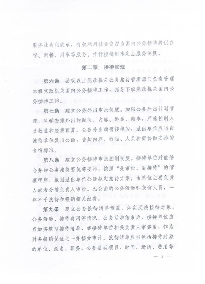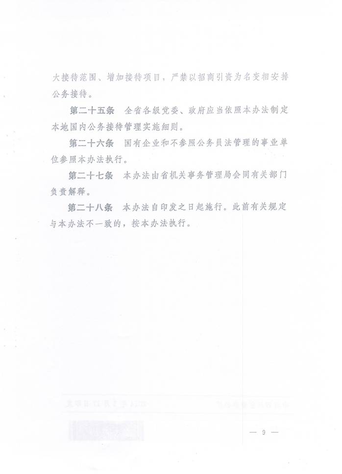 川委办〔2014〕11号-中共四川省委办公厅 四川省人民政府办公厅关于印发《四川省党政机关国内公务接待管理办法》的通知. 发布时间:2014-04-14 15:43:00 浏览次数: 次 【字体:小 大】 【打印正文】 上一条:关于实行校园临时交通管制的通告 下一条:计划财务处办理业务时间