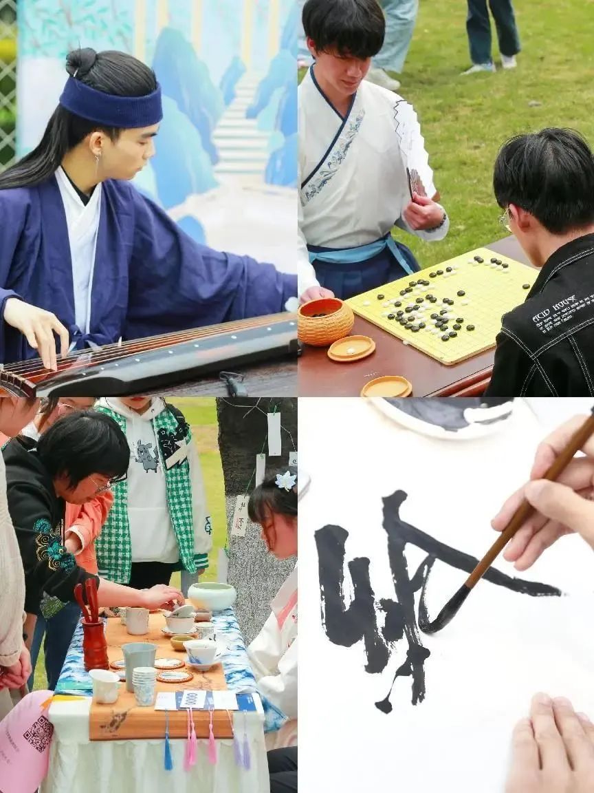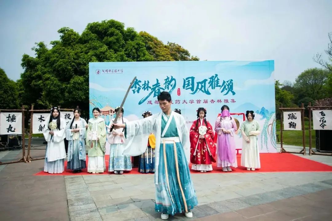 春和景明,惠风和畅,正是成中医大美时节, 3月30日和4月1日两天,一场别开生面的大型沉浸式传统文化体验活动在学校草坪-湿地景观区举行。活动以“杏林春韵·国风雅颂”--Beat365中文官方网站首届杏林雅集为主题,通过琴、棋、茶、诗等经典元素再现中式生活美学仪式,徜徉于百花环绕的“花间集市”,同学们可以沉浸式体验三十余项传统文化活动,5100余人次师生体验了古代文人朋友圈的社交活动。副校长曾芳,党委学生工作部(处)/招生就业处副处长杜娟、邱挺和学院分管学生工作领导、辅导员出席本次活动。