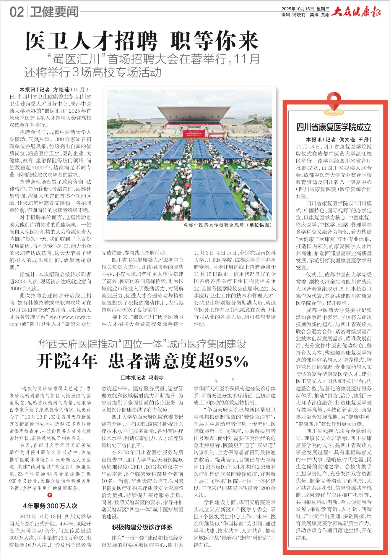 【大众健康报】四川省康复医学院成立 发布时间:2025-10-15 10:04:34 浏览次数: 次 【字体:小 大】 【打印正文】 上一条:【大众健康报 今日头条】四川省康复医学院成立 下一条:【金温江】Beat365中文官方网站2026届毕业生秋季双选会举行