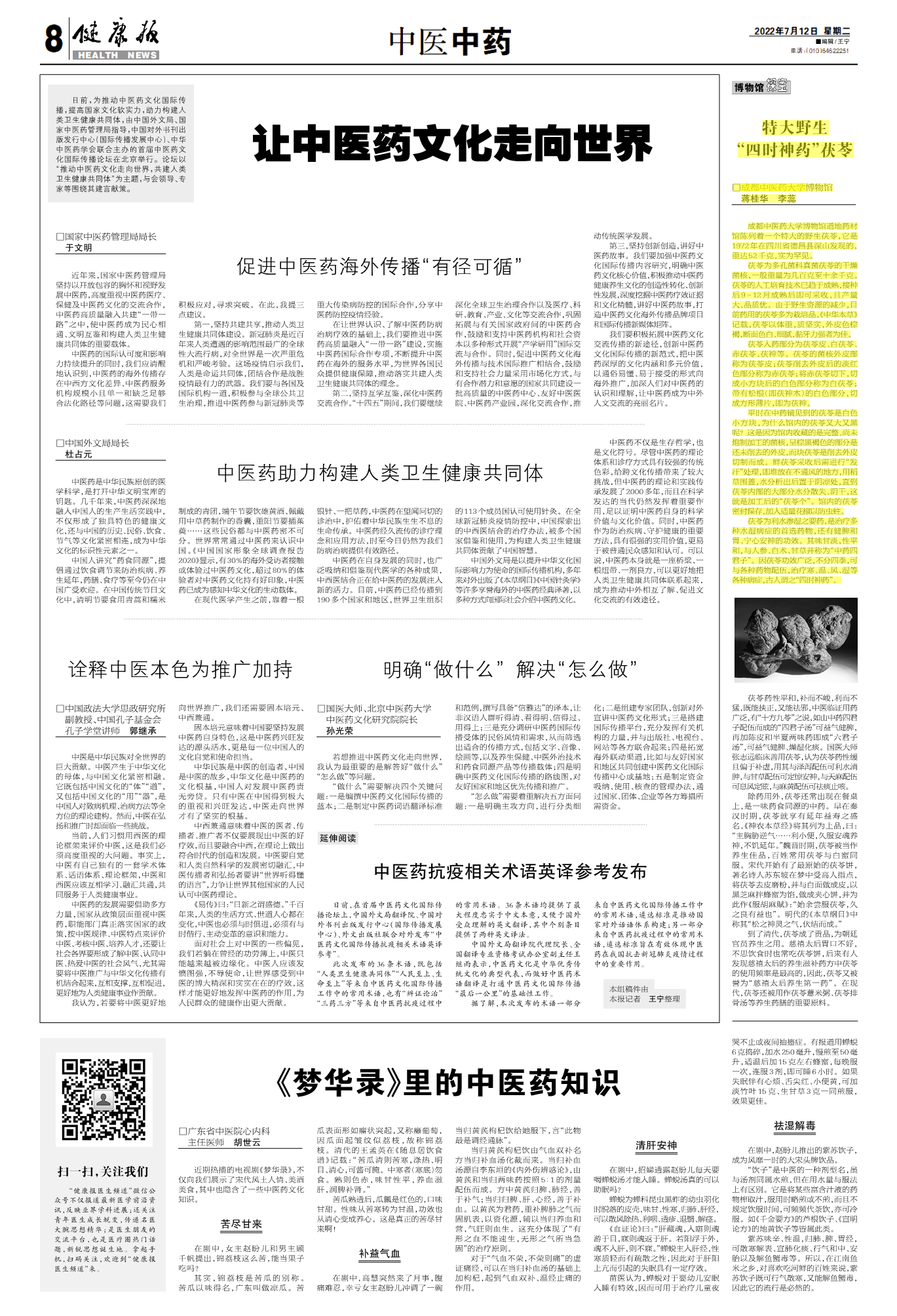 《中国中医药报》:特大野生“四时神药”茯苓 发布时间:2022-07-20 00:00:00 浏览次数: 次 【字体:小 大】 【打印正文】 上一条:封面新闻:打造新时代《本草纲目》 Beat365中文官方网站发布“千种本草基因组计划” 下一条:成都日报“锦观”新闻:让药用植物拥有“身份证” 千种本草基因组计划在蓉启动