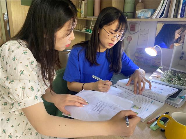 分享学习资料、模拟实战练习、抽背知识点……谈及复习备考路上的相互帮助的经历,夏青青表示,大家基本上都保持高度的“同频共振”,遇到好的学习资料会一起分享,遇到难题也会共同解决。“我们寝室的学习状态挺好的,比较和谐,大家经常相互鼓励,比如说晚上寝室熄灯之后,我们会在床上互相交流自己当天学习所遇到的困难,然后大家互相讨论,以此来帮助自己理解和记忆知识点。除此之外,我们也会定期进行互相抽背,如果有人三个知识点没有回答上来,我们就会让她去买奶茶或者取快递,用各种方法互相激励。”