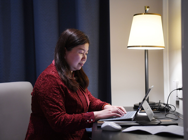 曾芳正在对提案进行最后的修改完善。