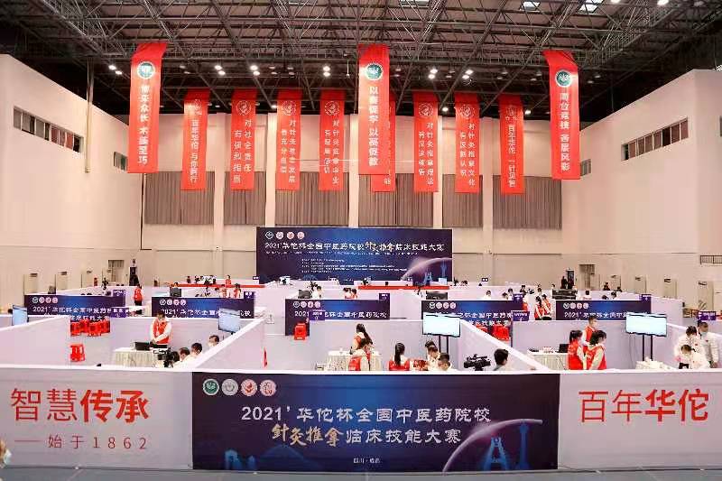 10月16日-17日,2021’华佗杯全国中医药院校针灸推拿临床技能大赛在四川成都举行。来自北京、上海、辽宁、陕西、甘肃、山东、河北、湖南、福建等省份的33支表队数百名针推英才参赛,他们齐聚素有“中医之乡、中药之库”之称的四川,同台竞技,相互交流,共同带来了一场针灸推拿知识与技能的盛宴。