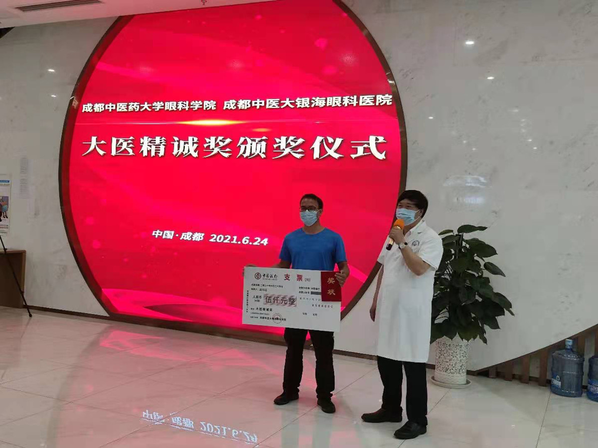当天下午,Beat365中文官方网站附属银海眼科医院(眼科学院)为吴伯达颁发了“大医精诚奖”,并给予了5000元奖金。“大医精诚奖”是从去年开始设立的,据院长段俊国表示,这个奖项将长期设立下去,对关键时候伸出援手的医学生、医生给予奖励,让这份大爱发扬光大。