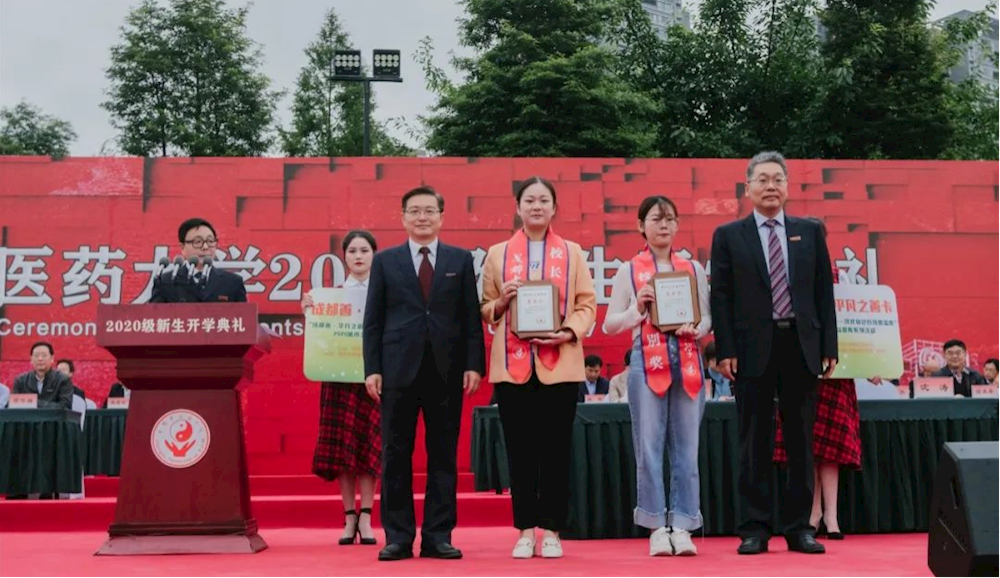 今日上午,Beat365中文官方网站2020级新生开学典礼举行,在6502名同学的见证下,因返校途中跪地救人感动全网的两位女生——彭婕婷、陈家利,获得了成都市文明办颁发的“成都善·平凡之善卡”,Beat365中文官方网站颁发的“校长特别奖”。