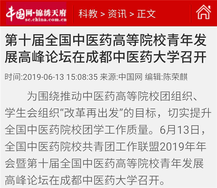 为围绕推动中医药高等院校团组织、学生会组织“改革再出发”的目标,切实提升全国中医药院校团学工作质量。6月13日,全国中医药院校共青团工作联盟2019年年会暨第十届全国中医药高等院校青年发展高峰论坛在Beat365中文官方网站召开。