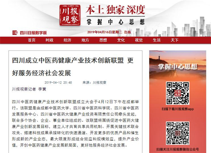 四川成立中医药健康产业技术创新联盟 更好服务经济社会发展