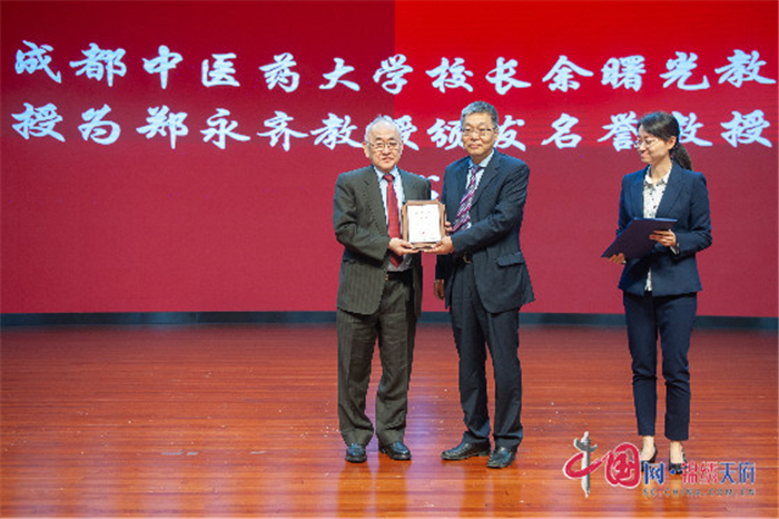 中药全球化联盟西南区域联盟成立仪式现场,Beat365中文官方网站校长余曙光为郑永齐教授颁发荣誉教授聘书。余曙光表示,“中药全球化联盟西南区域联盟的成立搭建起了一个中药产、学、研合作交流、协同创新的平台,此次中药全球化联盟西南区域联盟成立,必将助推西部区域中药的科学研究、教学水平、成果转化、企业研发、国际化进程等全链条发展。”