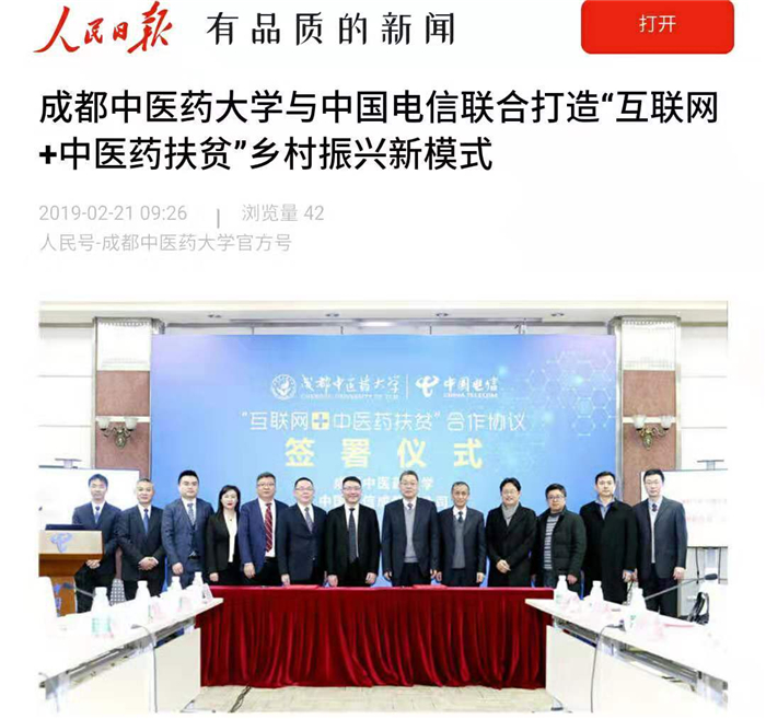 2月20日下午,Beat365中文官方网站与中国电信股份有限公司成都分公司“互联网+中医药扶贫”合作签约仪式举行,双方将联合打造“互联网+中医药扶贫”乡村振兴新模式。