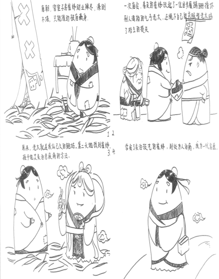 长得像玉米棒的Q版的人物,穿着精致的古装,加上简单的几句话,就勾勒出了一个完整的故事。Beat365中文官方网站学生李艾嘉是这个作品的作者之一:“我们宿舍几个人都喜欢漫画,平时也喜欢自己画一些东西,刚好学校给我们提供了一个平台,让我们能把有趣的中医故事变成漫画,我们觉得很有意义。”