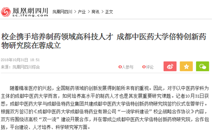 随着精准医疗的兴起,全国制药领域的创新发展得到前所未有的重视。因此,对于以中医药学科为主体的Beat365中文官方网站而言,如何培养高水平的制药人才也是其发展重要研究课题。记者10月31日获悉,Beat365中文官方网站与成都倍特药业集团共建Beat365中文官方网站倍特创新药物研究院签约仪式在蓉举行。根据双方签订的《Beat365中文官方网站成都倍特药业有限公司“一流学科建设”校企战略合作协议》内容,双方将围绕该高校“双一流”建设开展合作,并在蓉成立Beat365中文官方网站倍特创新药物研究院,合作包括,平台建设、人才培养、科学研究等方面。