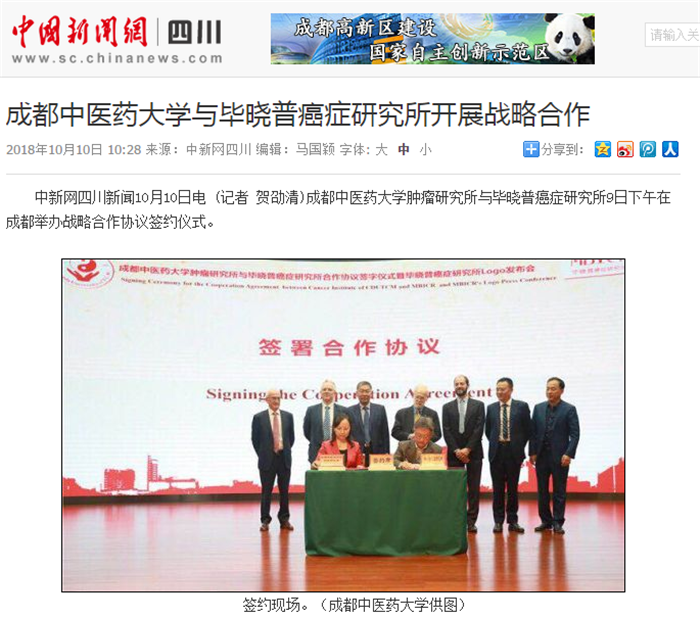 Beat365中文官方网站肿瘤研究所与毕晓普癌症研究所9日下午在成都举办战略合作协议签约仪式。