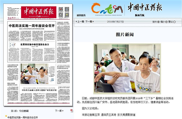 《中国中医药报》:Beat365中文官方网站开展“三下乡”暑期社会实践活动 发布时间:2018-08-02 00:00:00 浏览次数: 次 【字体:小 大】 时间:2018年7月27日 来源:《中国中医药报》 链接:http://paper.cntcm.com.cn/html/content/2018-07/27/content_601034.htm 内容: Beat365中文官方网站开展“三下乡”暑期社会实践活动 日前,Beat365中文官方网站组织该校党员服务团开展2018年“三下乡”暑期社会实践活动,先后前往四川省广安市、岳池县和武胜县,在当地举行义诊、健康讲座等活动。 图为义诊现场。 本报记者赖玉萍 通讯员王其奇 彭文禹摄影报道 【打印正文】 上一条:《天府早报》:成都中药炮制师黄勤挽揭开中药炮制神秘面纱 下一条:《人民日报》(海外版):中华传统医药漫谈:为何小宝宝会“脖子歪”?