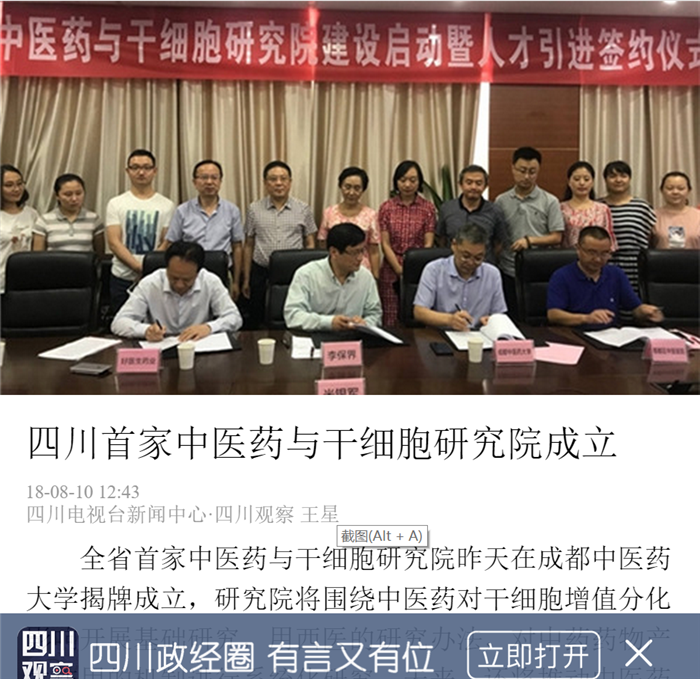 省委十一届三次全会作出“支持中医药和民族医药事业传承发展”的指示要求,干细胞研究是现代科学研究的热点与前沿,四川中医药与干细胞研究院将深入贯彻立足中医药资源优势,用好中医药大健康产学研合作平台,在中医药与干细胞研究上通力合作、集智攻关,推动四川中医药高质量发展.