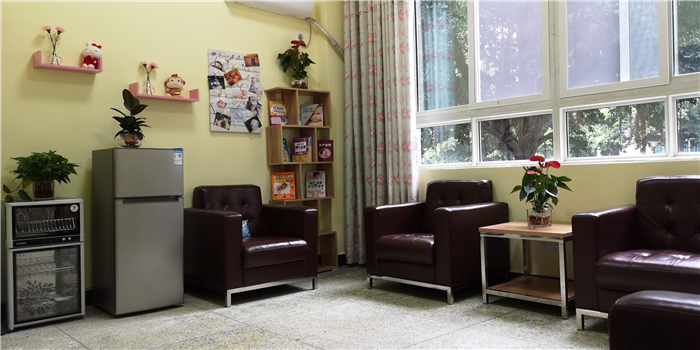 “妈妈爱心小屋”是由学校后勤基建处与校工会联合打造的母婴室。室内配备了冰箱、消毒柜等设施为母乳的储存提供安全保障,舒适的座椅、贴心的图书,空调、热饮,甚至连窗帘、画框、盆栽、小摆件等都是精心挑选,温馨淡雅,充满童趣的室内环境让人顿感温馨,将为职场妈妈送上贴心服务。