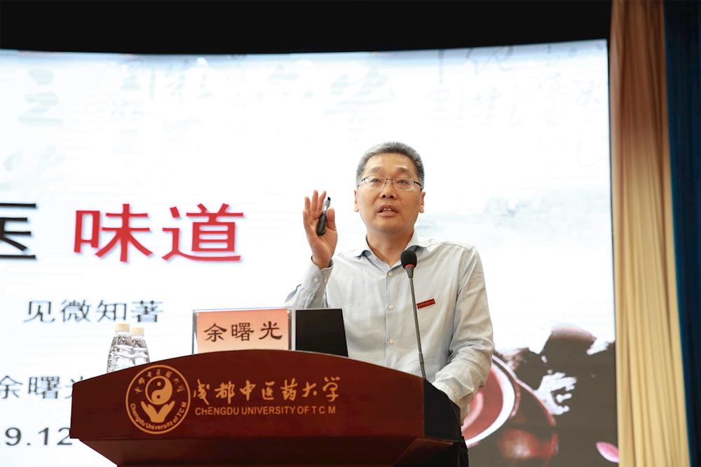 余曙光以“成中医味道——以小见大,见微知著”为主题,与同学们溯源中医药历程和成中医历史、概览今日中医药趋势和成中医发展新貌,并深情寄语这群即将开启人生新篇章的“新成中医人”。