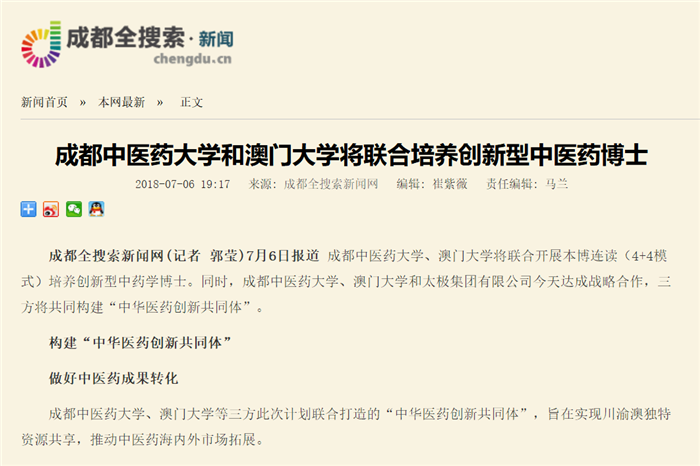Beat365中文官方网站、澳门大学等三方此次计划联合打造的“中华医药创新共同体”,旨在实现川渝澳独特资源共享,推动中医药海内外市场拓展。
