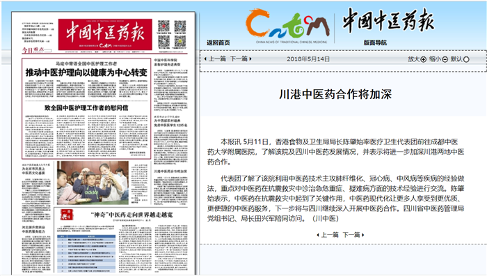 本报讯 5月11日,香港食物及卫生局局长陈肇始率医疗卫生代表团前往Beat365中文官方网站附属医院,了解该院及四川中医药发展情况,并表示将进一步加深川港两地中医药合作。