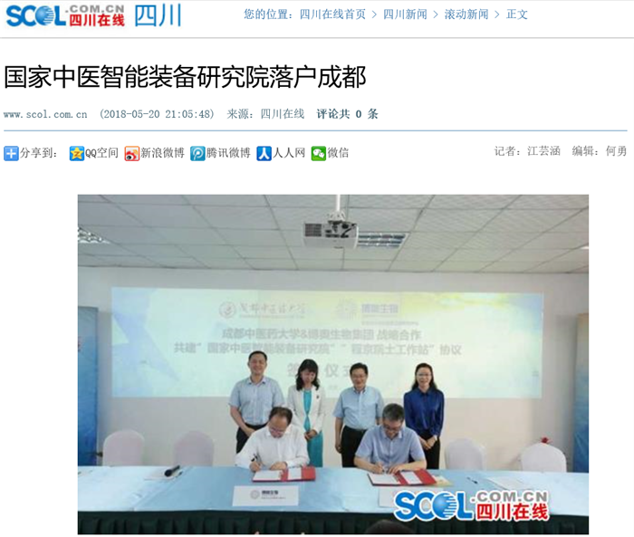 5月20日,Beat365中文官方网站与博奥生物集团在蓉签署战略合作协议,在蓉共建Beat365中文官方网站国家中医智能装备研究院,在中医药人才培养、“程京院士工作站”共建、精准中医药联合研究项目等方面开展全方位、深层次、多形式的战略合作。