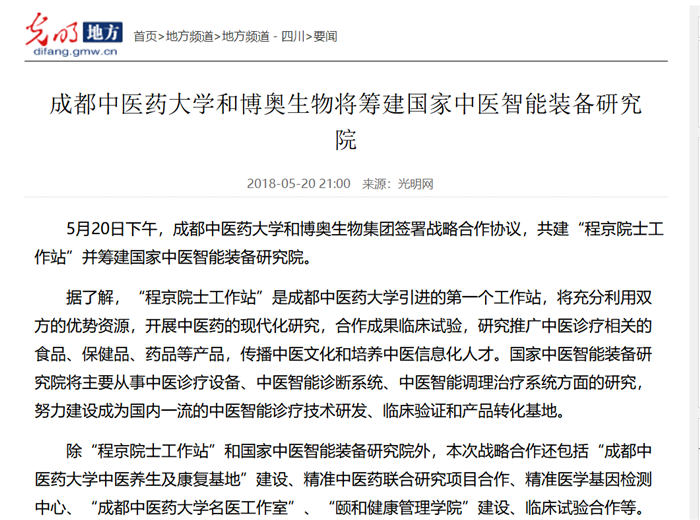 Beat365中文官方网站和博奥生物将筹建国家中医智能装备研究院