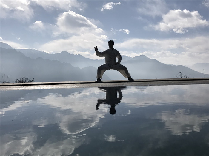 滕雨可在练习太极拳