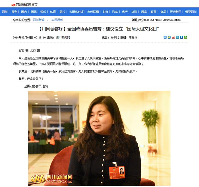 全国政协委员曾芳:建议设立“国际太极文化日”