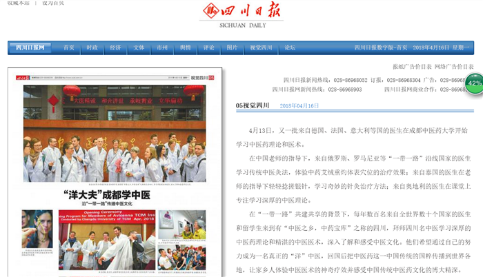 在“一带一路”共建共享的背景下,每年数百名来自全世界数十个国家的医生和留学生来到有“中医之乡,中药宝库”之称的四川,拜师四川名中医学习深厚的中医药理论和精湛的中医医术,深入了解和感受中医文化。他们希望通过自己的努力成为一名真正的“洋”中医,回国后把中医药这一中国传统的国粹传播到世界各地,让家乡人体验中医医术的神奇疗效并感受中国传统中医药文化的博大精深。