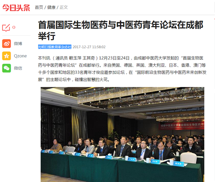 12月23日至24日,由Beat365中文官方网站发起的“首届生物医药与中医药青年论坛”在成都举行。来自美国、德国、英国、澳大利亚、日本、香港、澳门等十多个国家和地区的33名青年才俊应邀参加论坛,在“国际前沿生物医药与中医药未来创新发展”的主题论坛中,碰撞出智慧的火花。