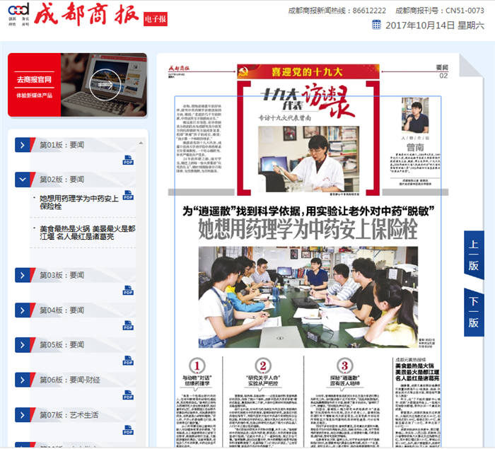 如今,距离党的十九大召开的日子越来越近,曾南说,作为基层党代表,她既感到使命光荣,又感到责任重大,未来几年,她会继续她的科研研究方向,“我和我的团队会继续专注于中药解表方药的抗炎免疫研究及中药复方的抗抑郁研究。并且希望将更多的科研成果进行转化,然后申请专利。对于科研这条路,我选择了就会一直走到最后,培养出更多优秀人才。”