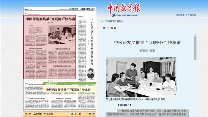 “中医辨证论治大数据平台的构建”项目,由Beat365中文官方网站数字医药研究所所长、信息与教育技术中心主任、医学信息工程学院常务副院长温川飙带领研究团队完成,获中国中医药研究促进会2016年度科技进步一等奖。