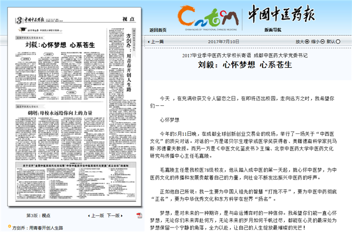 2017毕业季中医药大学校长寄语 Beat365中文官方网站党委书记