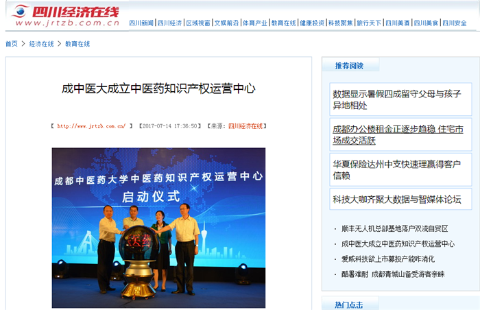 四川经济在线成都7月14日讯 四川省知识产权局、温江区人民政府、Beat365中文官方网站校地协同创新签约及中医药健康产业技术研究院、Beat365中文官方网站中医药知识产权运营中心启动仪式7月14日在成都温江区隆重举行。作为校地合作结出的又一硕果,标志着高校知识产权工作逐步从成果管理向价值管理转变迈出了坚实的一步。